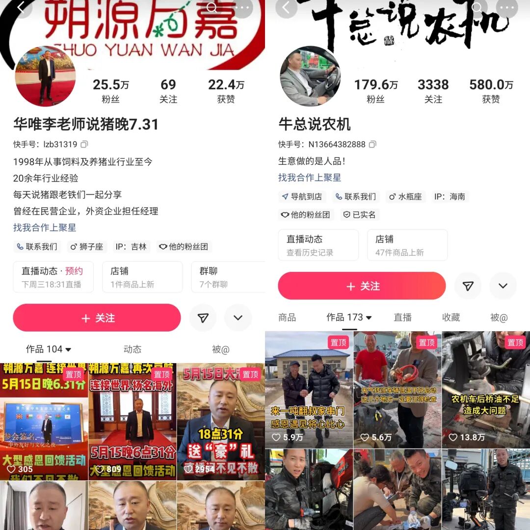 专注讲解养猪知识的“华唯李老师说猪”单场农资直播销售额突破500万元;20多年的农机行业从业者“牛总说农机”曾一场直播卖出超过500万元的农机具及配件。