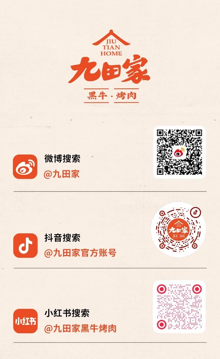 文章内容来源于公众号:九田家黑牛烤肉官方号,点此可查看原文,内容版权归相关企业所有,本网站仅供交流学习。若涉及版权问题或存在侵权情况,请及时与我们联系,我们将第一时间进行删除处理。