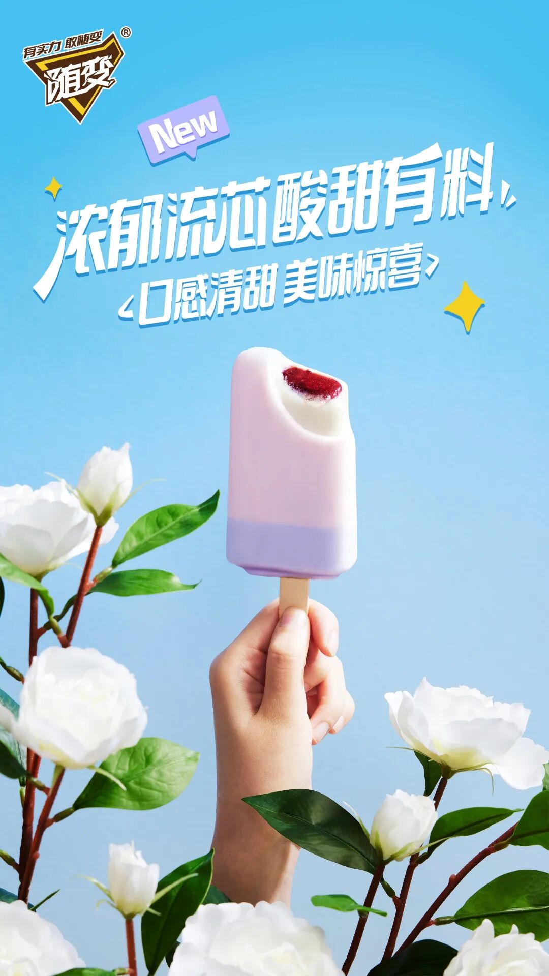 山茶花蓝莓桑葚口味白巧冰淇淋