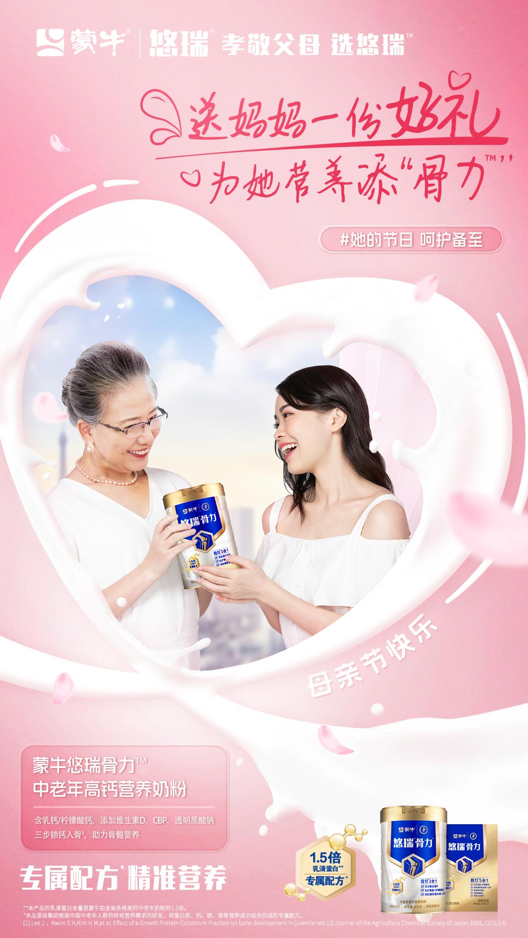 爱,是陪伴,是关怀,更是蒙牛悠瑞骨力给予妈妈的健康守护。蒙牛悠瑞骨力,三步科学营养,全面支持骨骼健康。无论是追逐晨光的脚步,还是午后与老友的悠闲散步,让妈妈的每一步都充满爱的力量。让妈妈的健康与活力,成为我们共同的骄傲!