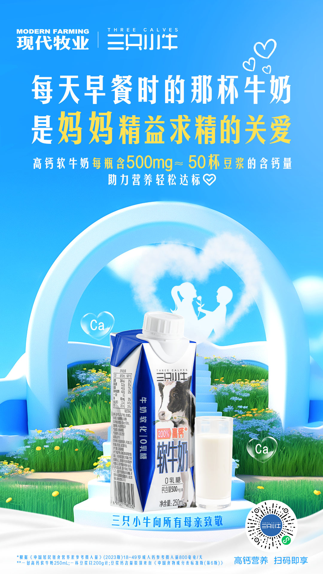早餐时的那杯三只小牛高钙软牛奶,