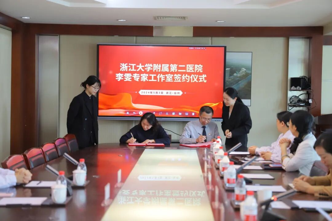 5月3日,浙江大学医学院附属第二医院李雯专家工作室签约揭牌仪式在我院举行。浙江大学医学院附属第二医院呼吸与危重症医学科副主任、浙江省医学会呼吸病分会主任委员李雯、浙江大学医学院附属第二医院呼吸与危重症医学科主任医师夏旸及我院领导班子成员出席签约仪式,我院呼吸科全体医护人员参加签约仪式。会议由我院王东升党委副书记、副院长主持。