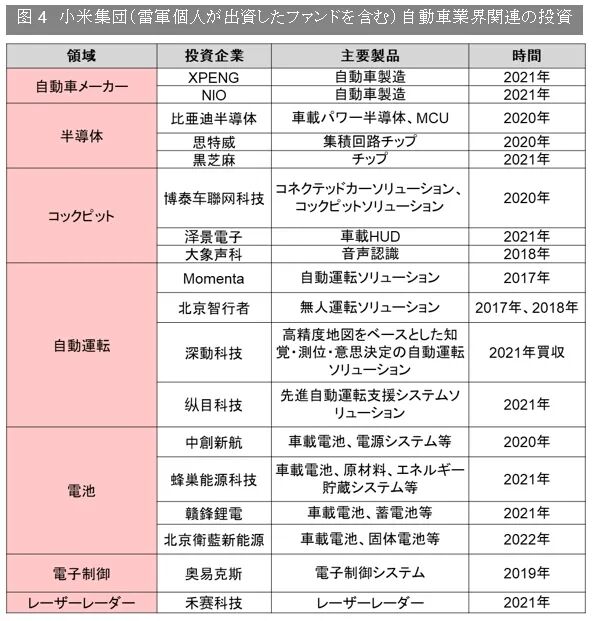 Ⅲ、小米集団(雷軍個人が出資したファンドを含む)自動車業界関連の投資について(一部のみ)