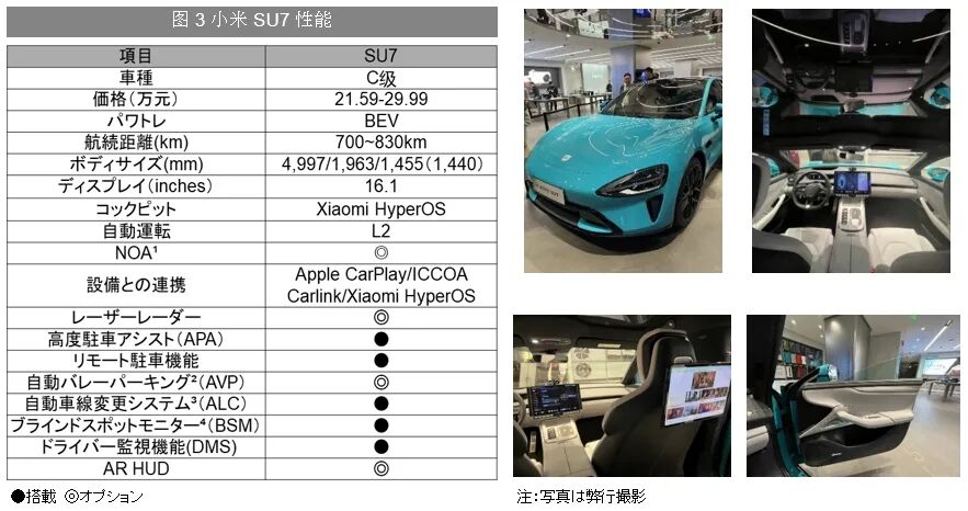 現時点、小米SU7の販売が好調だが、競争が激化する中国市場では、今後、自社の優位性を維持しながら市場シェアを拡大することが課題である。