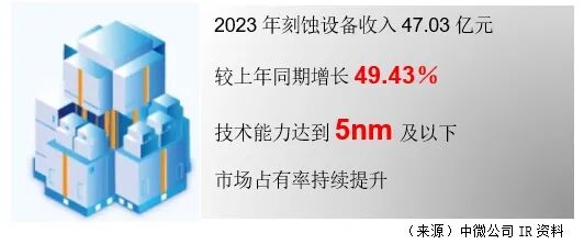 从2022年美国禁令先进半导体设备(用于制造14nm及以下的逻辑芯片、128层及以上NAND闪存芯片和半间距小于等于18nm的DRAM存储芯片)的对中国出口。考虑到中微公司刻蚀设备可以对应5nm的制造工艺,可以看出中国先进的半导体制造技术稳步推进。另外,刻蚀是芯片制造流程中的重要工艺,在芯片微型化的趋势下,刻蚀工艺次数将会增加,刻蚀设备的需求也将会增加。