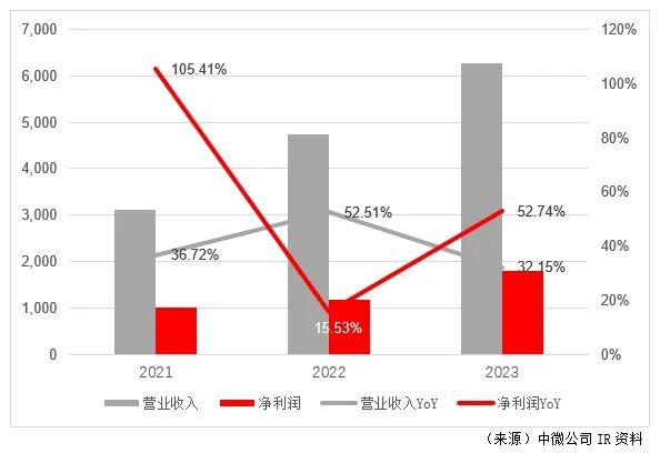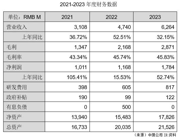 2023年,公司营业收入62.64亿元,较2022年增长约32.15%;其中大陆地区营业收入为57.64亿元,占总营业收入的92%;对台湾地区的营业收入为4.22亿元,占总营业收入的7%,该公司主要客户大部分在中国大陆。2023年公司净利润为17.84亿元,较2022年增长52.74%;新增订单金额为83.6亿元,同比增长32.3%。此外,2023年公司的研发费用为8.17亿元,同比增长35%,这表明公司通过积极投资来专注于技术研发。2023年,该公司新增申请专利292项,历年累计2,551项;2023年新增获授权专利274项,已获专利总数达到1,547项。