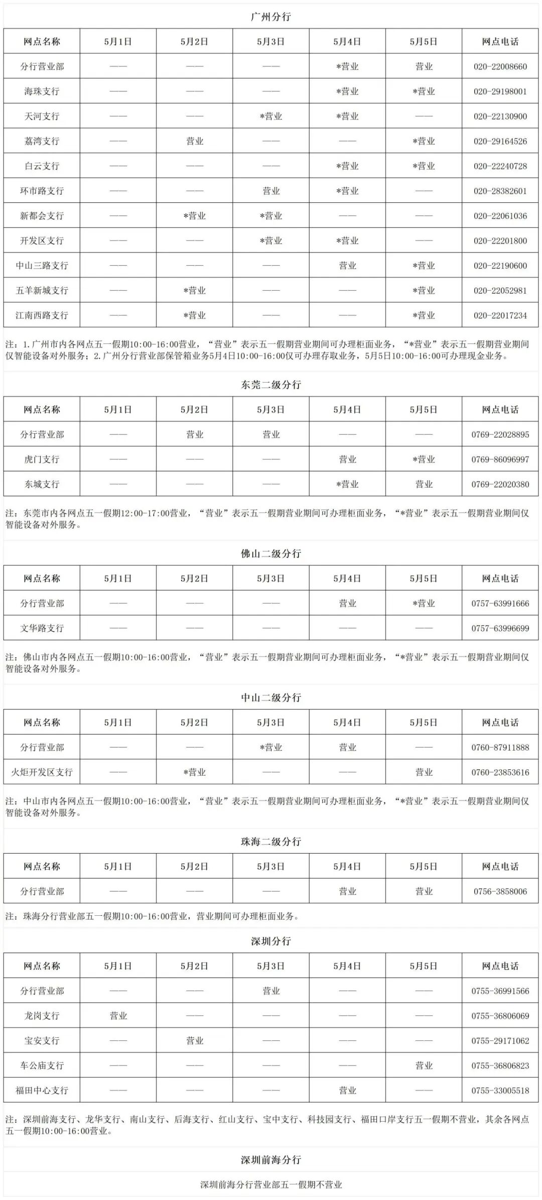 *以下信息均为计划营业时间,最终营业时间请以网点公告为准。