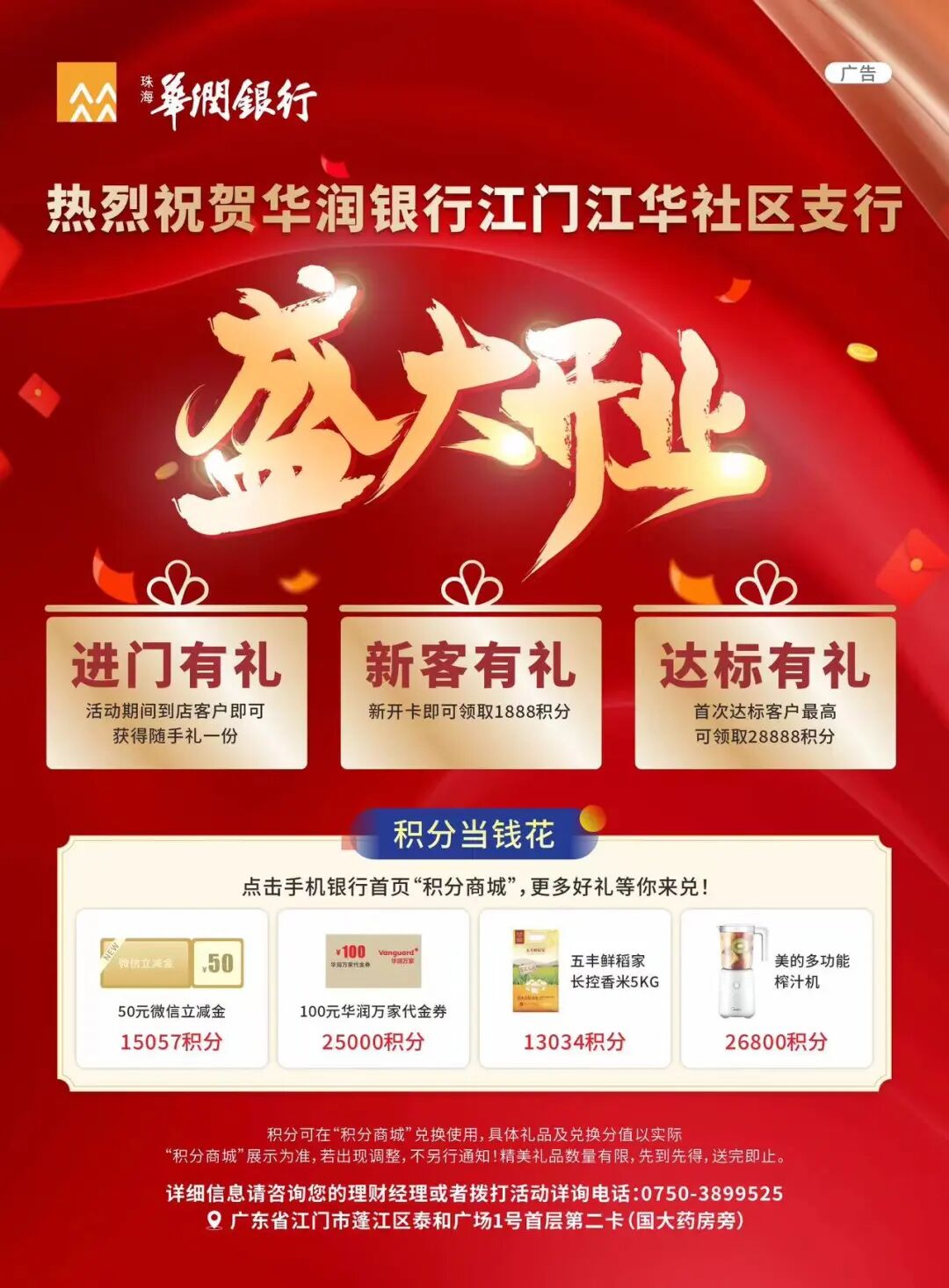 摘要:4月18日珠海华润银行江门江华社区支行盛大开业