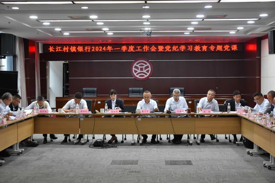 2024年4月30日,长江村镇银行2024年一季度工作会暨党纪学习教育专题党课在武银光谷大厦顺利召开。长江金服(筹)党委班子成员,各驻外管理班子成员,各村行董事长,长江金服机关经理级以上干部参加本次会议。