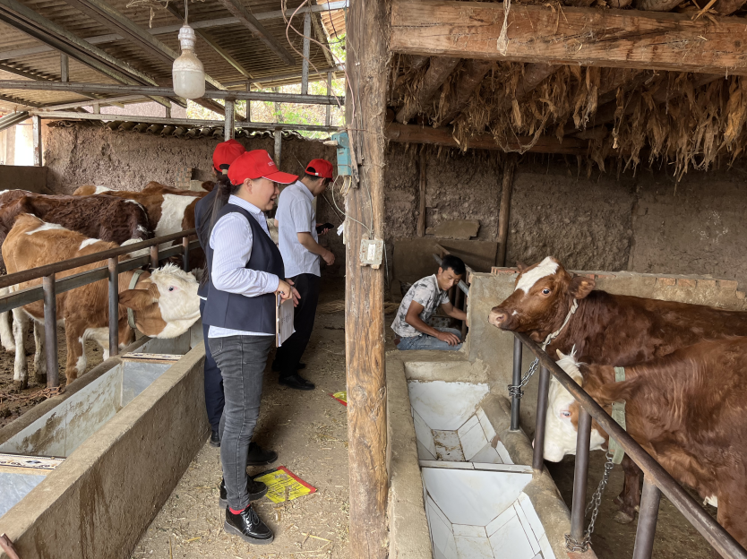 走访养殖户的牛棚内,