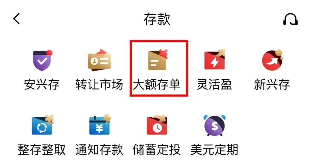 在手机银行首页,点击“存款”按钮,跳转至存款页面,再点击“大额存单”按钮,即可跳转到大额存单产品页,在产品列表中找到自己合适的产品点击购买。