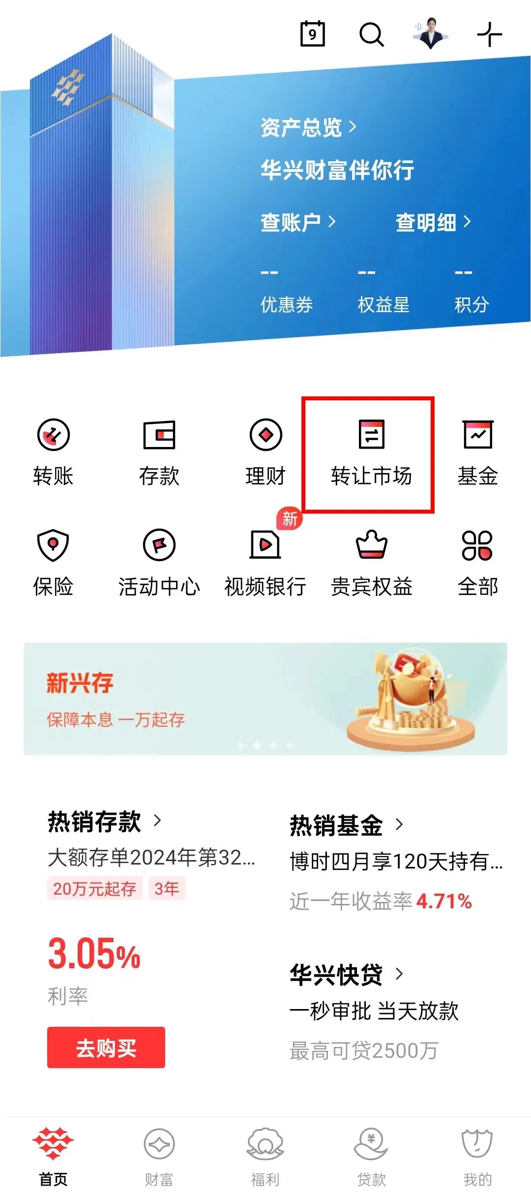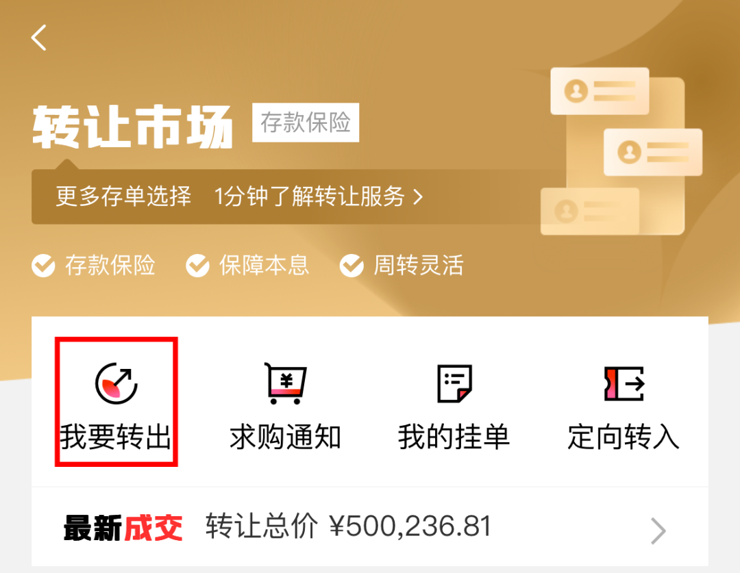 1、在手机银行首页,点击“转让市场”按钮,跳转至转让市场页面,再点击“我要转出”,即可跳转到大额存单转让页面。