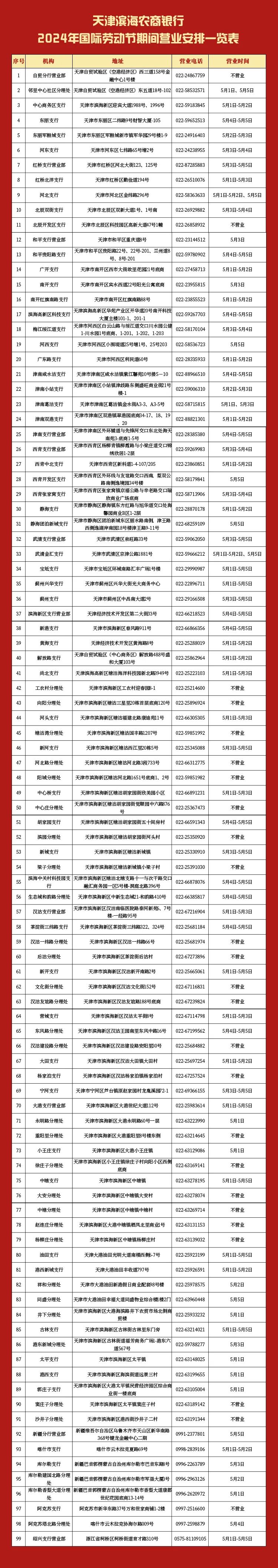 4月28日(星期日)、5月11日(星期六)上班。放假期间,我行网点营业时间安排详见下表