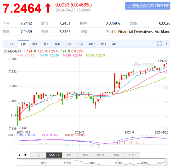中国人民银行授权中国外汇交易中心公布,2024年4月23日银行间外汇市场人民币汇率中间价为1美元对人民币7.1059元,1欧元对人民币7.6053元,100日元对人民币4.6228元,1港元对人民币0.90687元,1英镑对人民币8.8148元,1澳大利亚元对人民币4.6119元,1新西兰元对人民币4.2402元,1新加坡元对人民币5.2357元,1瑞士法郎对人民币7.8279元,1加拿大元对人民币5.2161元,人民币1元对1.1364澳门元,人民币1元对0.67255林吉特,人民币1元对13.0756俄罗斯卢布,人民币1元对2.6938南非兰特,人民币1元对192.08韩元,人民币1元对0.51493阿联酋迪拉姆,人民币1元对0.52591沙特里亚尔,人民币1元对52.0453匈牙利福林,人民币1元对0.56995波兰兹罗提,人民币1元对0.9846丹麦克朗,人民币1元对1.5246瑞典克朗,人民币1元对1.5402挪威克朗,人民币1元对4.56440土耳其里拉,人民币1元对2.4113墨西哥比索,人民币1元对5.1699泰铢。