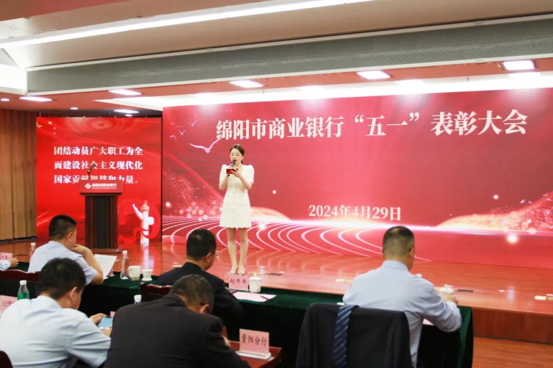 4月29日下午,绵阳市商业银行总行召开“五一”表彰大会,对全行10个先进工会组织、16名优秀工会干部、33名工会积极分子予以表彰。行党委副书记姜林出席会议并讲话。行党委副书记赵开年,行党委委员、副行长、工会主席刘冀川,副行长李明出席会议并颁奖。