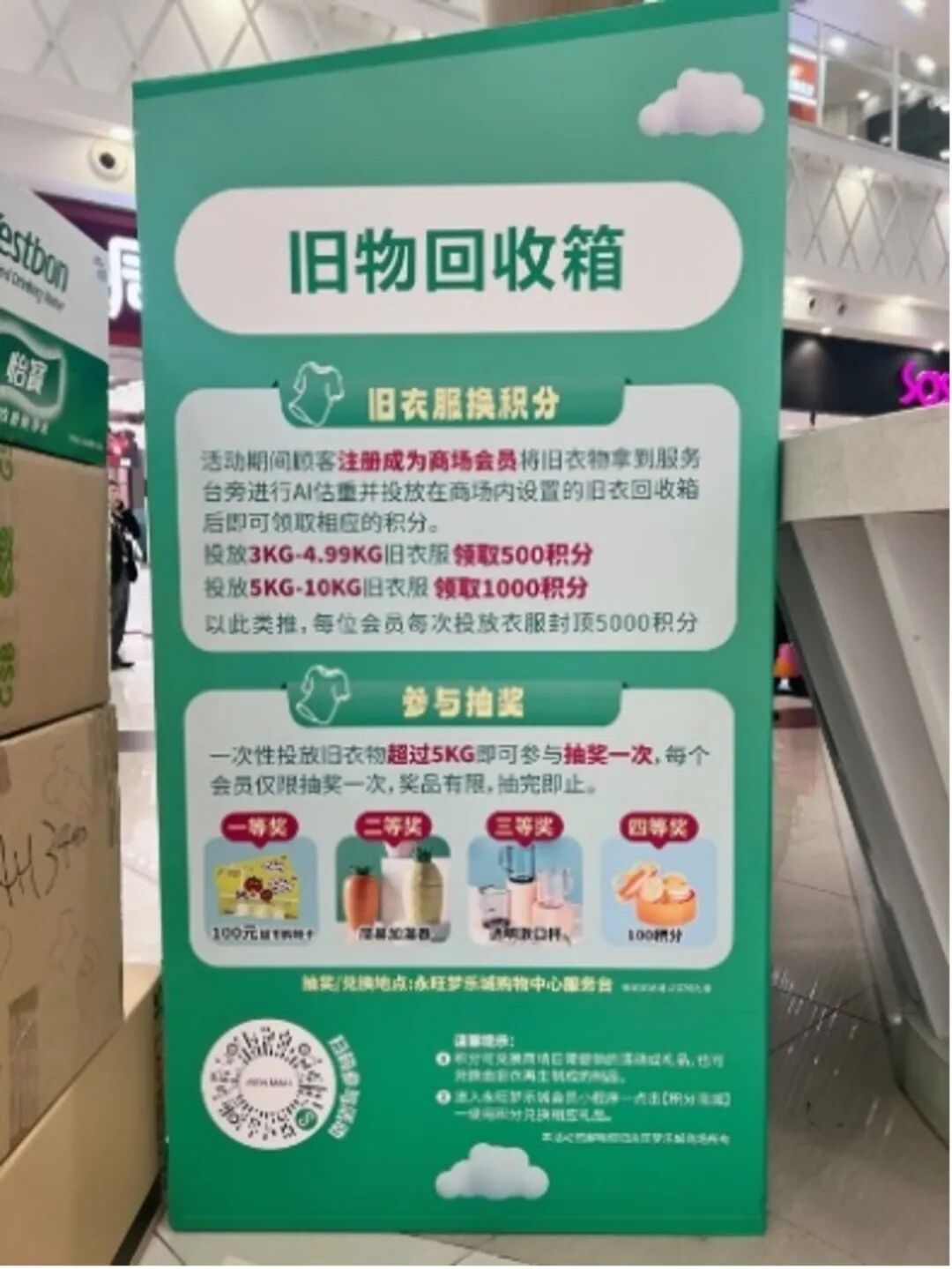 みずほ銀行(中国)有限会社(以下「当行」と略称)イノベーション企業支援室の積極的な支援のもとで、イオンモール(広東省)商業管理有限会社様(以下は「イオンモール広東」と略称)は上海斑鳩人工知能科技有限会社様(以下は「斑鳩回収」と略称)と連携し、2024年1月15日から2024年3月31日にかけてイオンモール広東の4店舗で、2社合同でのグリーンサステナビリティ事業(以下は「サステナ事業」と略称)である『古着リサイクルプロジェクト』を行っております。