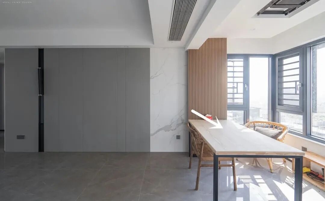 家里餐厅肯定是有的,但也可以放张长桌在阳台啊,准备些水果、饮料、点心,在这用个下午茶也是不错的选择。或者收拾干净桌面,偶尔在这居家办公,累的时候还能抬头眺望下外面的风景,放松下身心。
