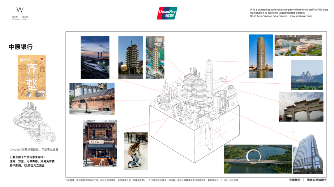看多了形形色色的广告和背后的执行故事,一个不得不承认的事实是:创意是有折损率的。从广告人脑中的一个火花,到我们最终看到的成品,天马行空的想法总要受制于状况百出的现实。而广告往往就是一眼定生死的瞬间心动,观众相信自己的眼睛、耳朵、感受,多过于相信广告人提案时的天花乱坠、执行中的波折不易。创意是要造飞机,执行是在拧螺丝。而螺丝拧成啥样,直接决定了这是架纸飞机、还是波音747。好广告不是一个美妙的创意。单有美妙的创意只是飞机稿,一个美妙的创意在执行过程中没有拉扯变形,才会成为好广告。或许这也就解释了,为何时隔数月我们再来看「区域有你 值得印记」这个项目时,依然觉得它是一个配得上金奖的好项目。![数英奖,银联,W]()
