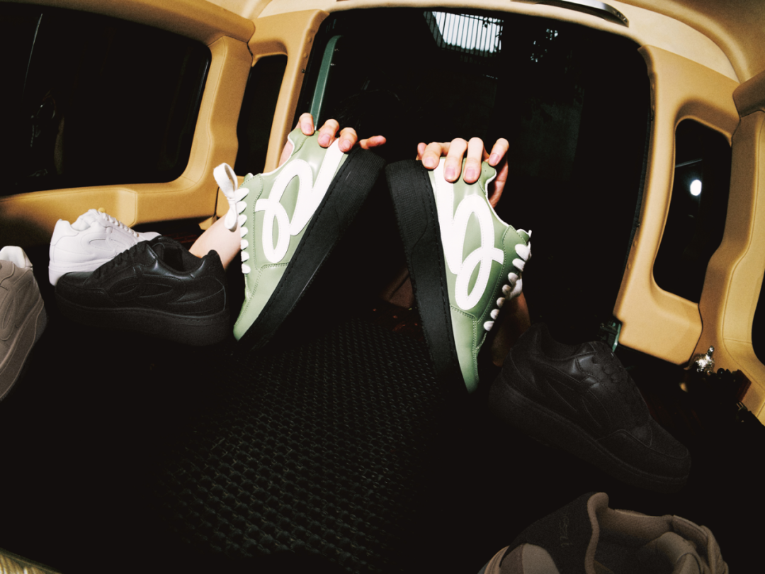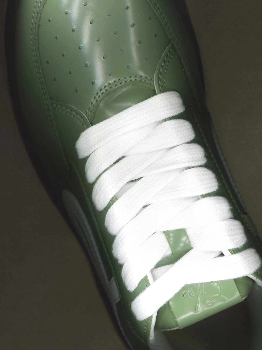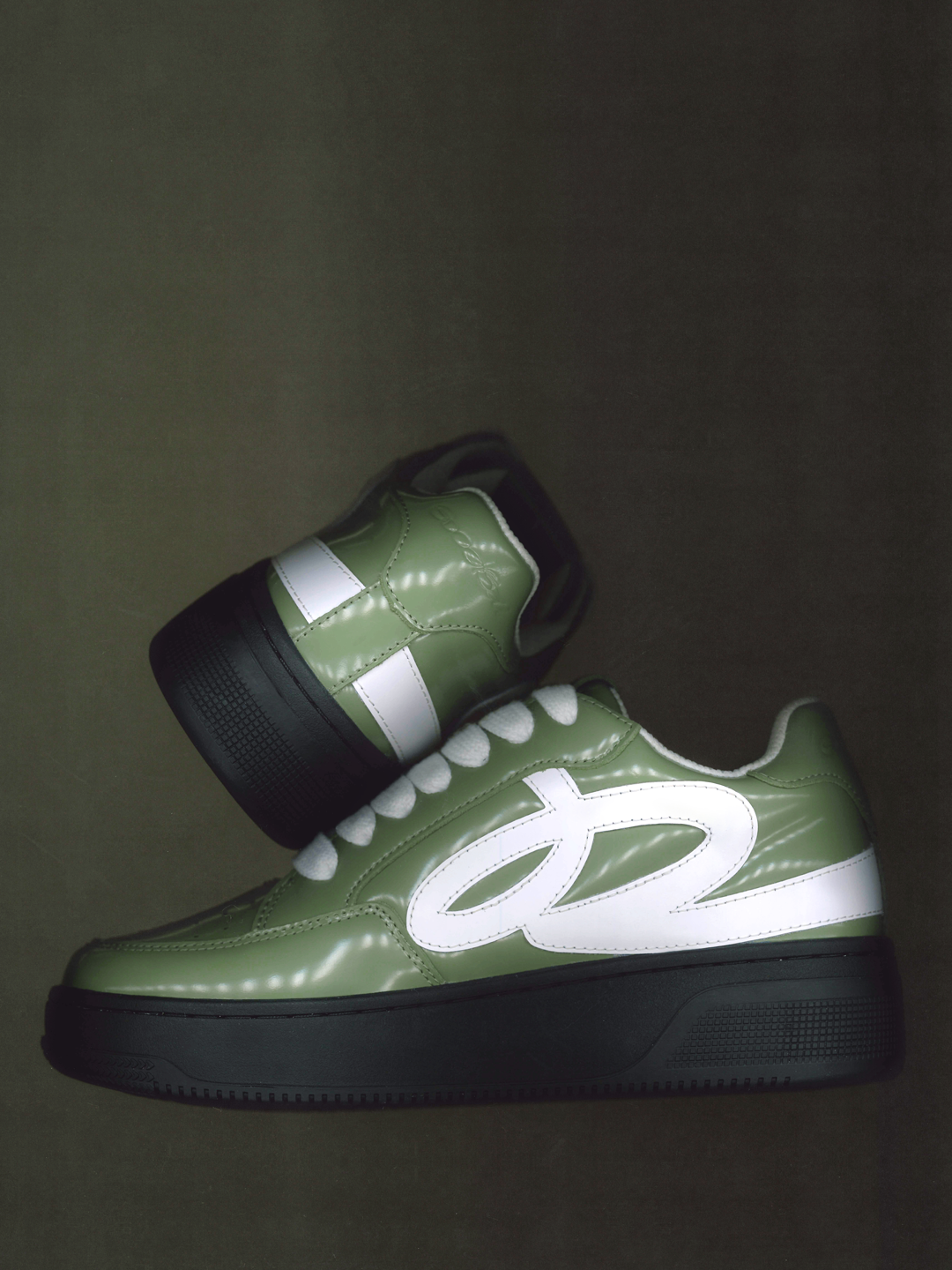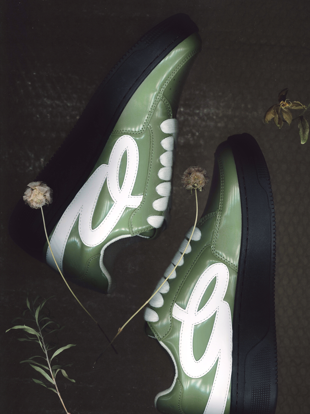 复古青绿依附于亮面鞋身,在灰调中隐匿光泽;白色G logo跃动于鞋侧,搭载黑色鞋底,为运动感鞋身轮廓沉稳收尾。