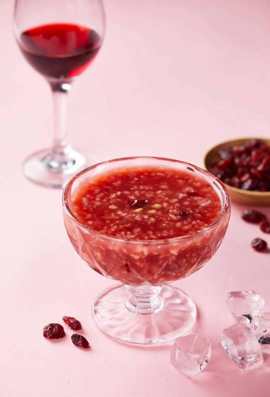 再点上一份冰爽的蔓越莓红酒香冰粥