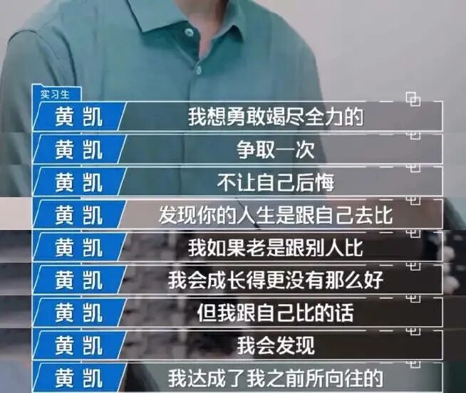 最近,“爱人如养花,最好的花匠是......”的话题爆火全网,引发网友们的热议。在《令人心动的offer5》中,实习生黄凯的出现,给出了这个问题最好的答案:花匠可以是家人、老师、爱人、朋友,但最好的花匠永远都是自己。从前受过的伤,可以在自己的努力下,慢慢愈合:从前被忽视的梦想,也可以靠自己一一播种。北大世家的任律,近乎调侃地说着自己:“我是北大一条龙,父母都在北大任教。”北大幼儿园,北大附小,北大附中,之后又考上了北京大学。如此光鲜的履历和教育背景,羡煞了屏幕前的很多观众。听完任律的故事,坐在黄凯身旁的搭档许文婷,也开始分享童年时期的趣事:她说自己在生日时,会和弟弟一起给爸爸妈妈表演节目,父母总是会笑着为他们鼓掌、喝彩。许文婷觉得自己的童年时光真的很快乐,父母的认可和鼓励,也成了自己生活中最大的底气。紧接着,二人将目光转移到黄凯身上,期待他关于自己童年的分享。“在我一岁时,父母离异了,就把我丢给了爷爷奶奶,母亲自此没有看过我,所以我对母亲基本没有印象。”直到去年,我才加上母亲微信,但是收到她的第一条信息,是让我不要打扰她的生活。