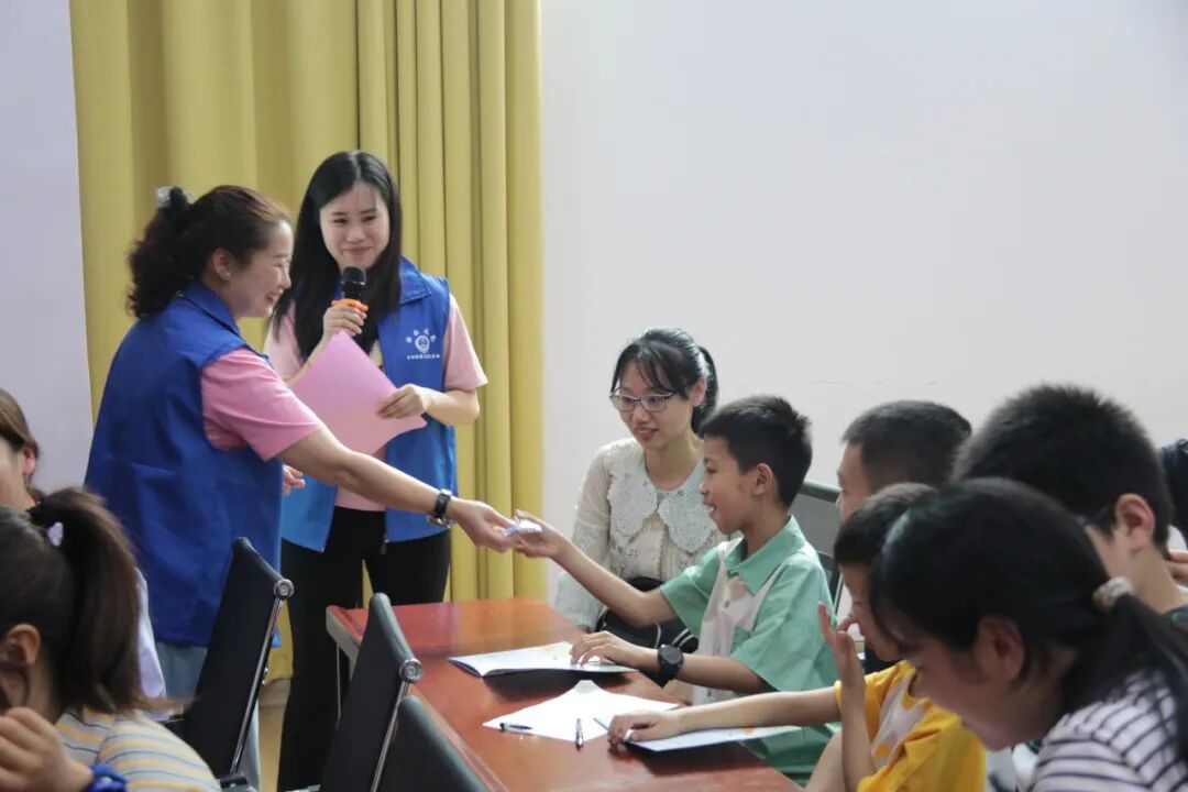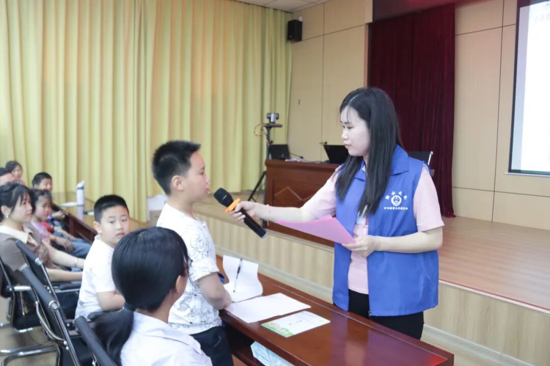古田县人民检察院第二检察部副主任洪锦丽结合《家庭教育促进法》《未成年人保护法》进行知识问答,孩子和家长们踊跃参与,一问一答之间促推父母反思自己的家庭教育方式,也让孩子们了解父母的辛苦和不易。问答环节准备了“古检文创作品”如钥匙扣、学生套尺、小夜灯等,现场氛围十分活跃。