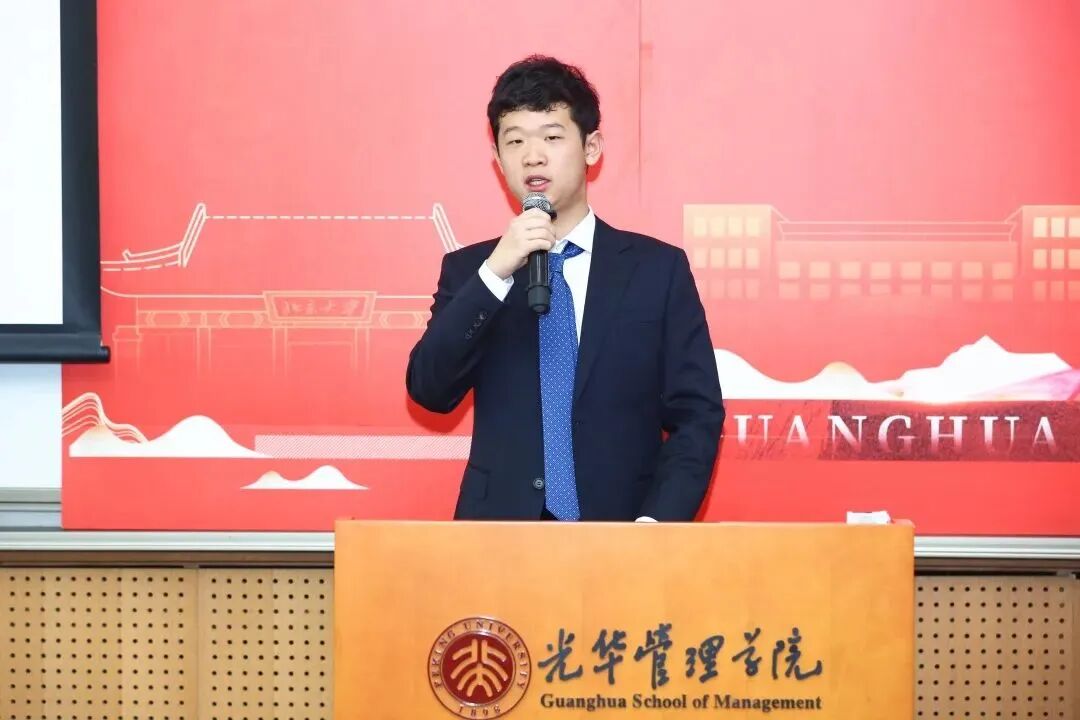 捐赠方代表、北京见数科技有限公司创始人姚凯校友发表致辞。姚凯表达了对学院栽培教育的感恩之情。他表示,见数平台的创立过程得益于多位教授的帮助,希望学院优秀学子既充分发挥所学,避免短视,追求长期价值;又做好定位和差异化,选择合适的发展道路,真正助力社会发展。