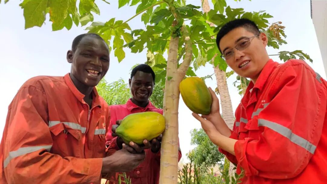 在位于撒哈拉大漠的长城钻探乍得项目基地里,一颗颗长势喜人的木瓜和芒果挂满枝头,基地分块种植的小萝卜、生菜等各类蔬菜,每到收获时节,中外籍员工们采摘水果和蔬菜共同分享。