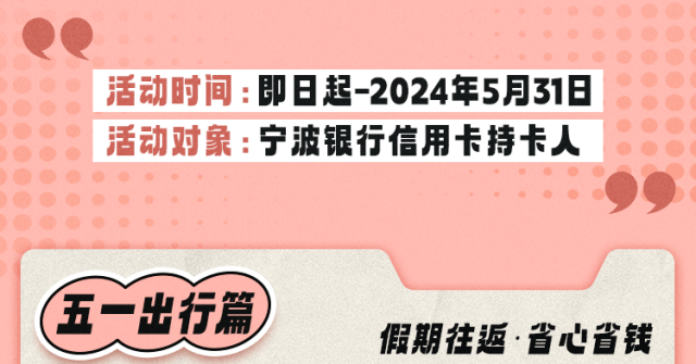文章内容来源于公众号:宁波银行信用卡,点此可查看原文,内容版权归相关企业所有,本网站仅供交流学习。若涉及版权问题或存在侵权情况,请及时与我们联系,我们将第一时间进行删除处理。