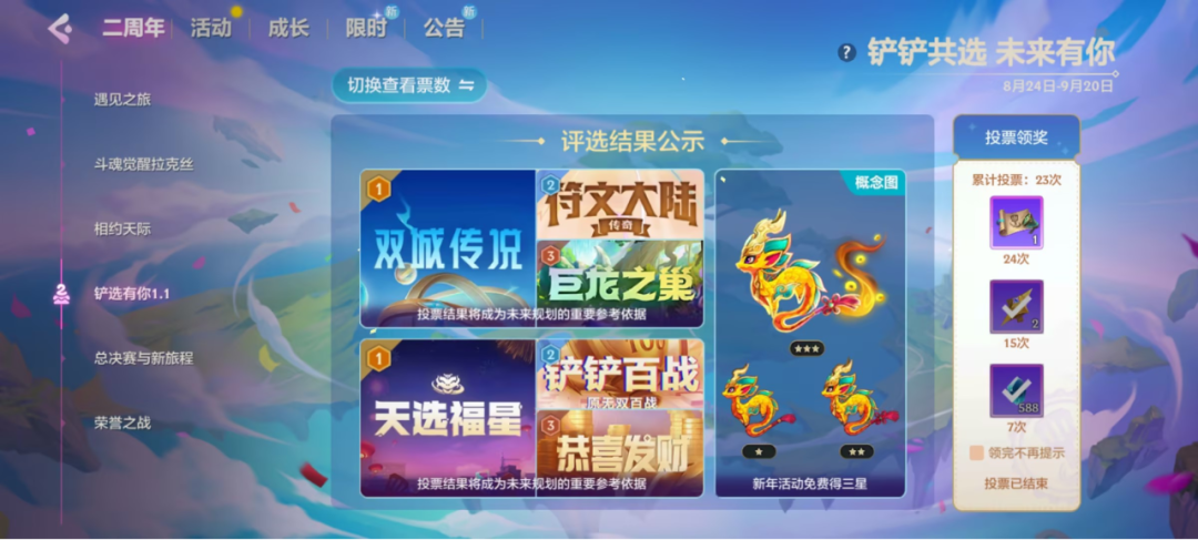 策划大大:双城传说是备受弈士欢迎的赛季,从我们二周年的铲铲共选活动中,我们也看到了大家对双城传说回归的期待。