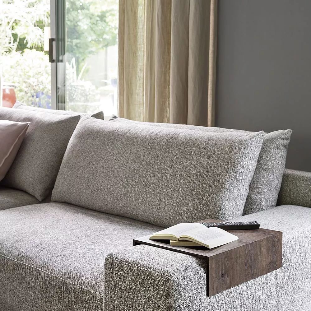 布艺沙发扶手上架一个放杯神器,享受热茶不怕洒。