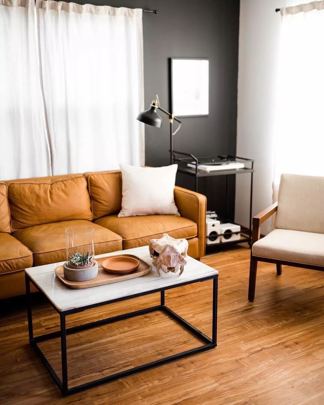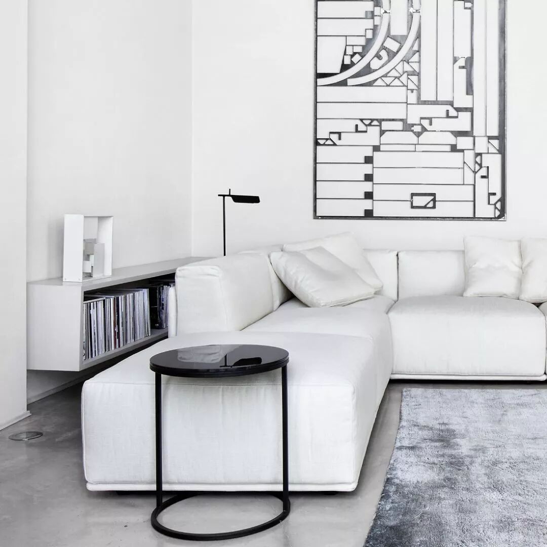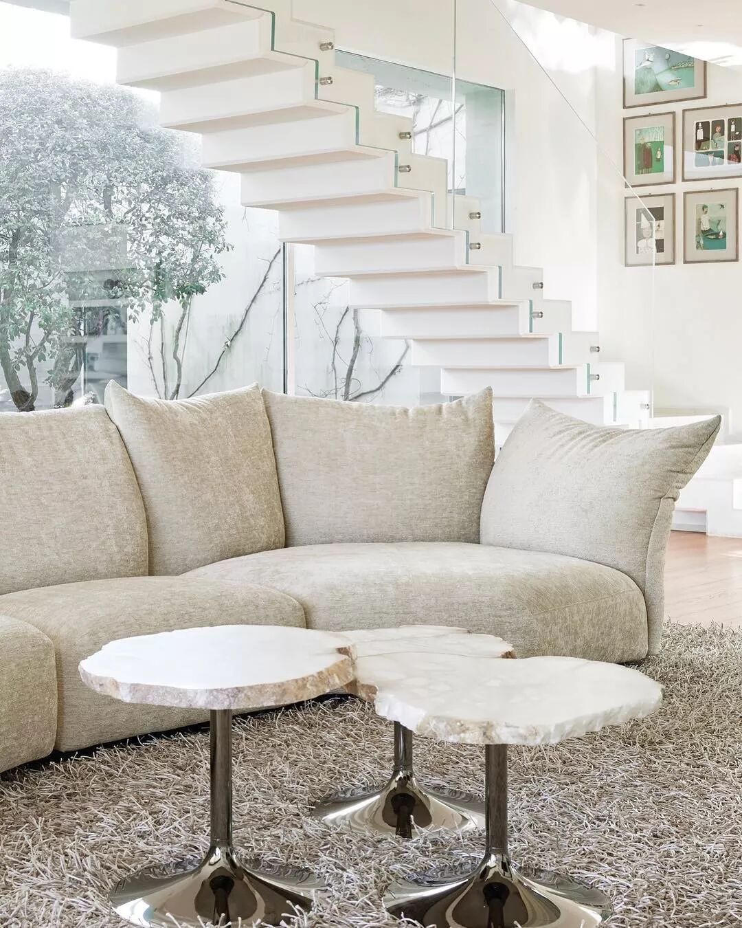 大而笨重的茶几越储物效率低,而且在灵活性上远远比不上灵活的沙发边小家具。