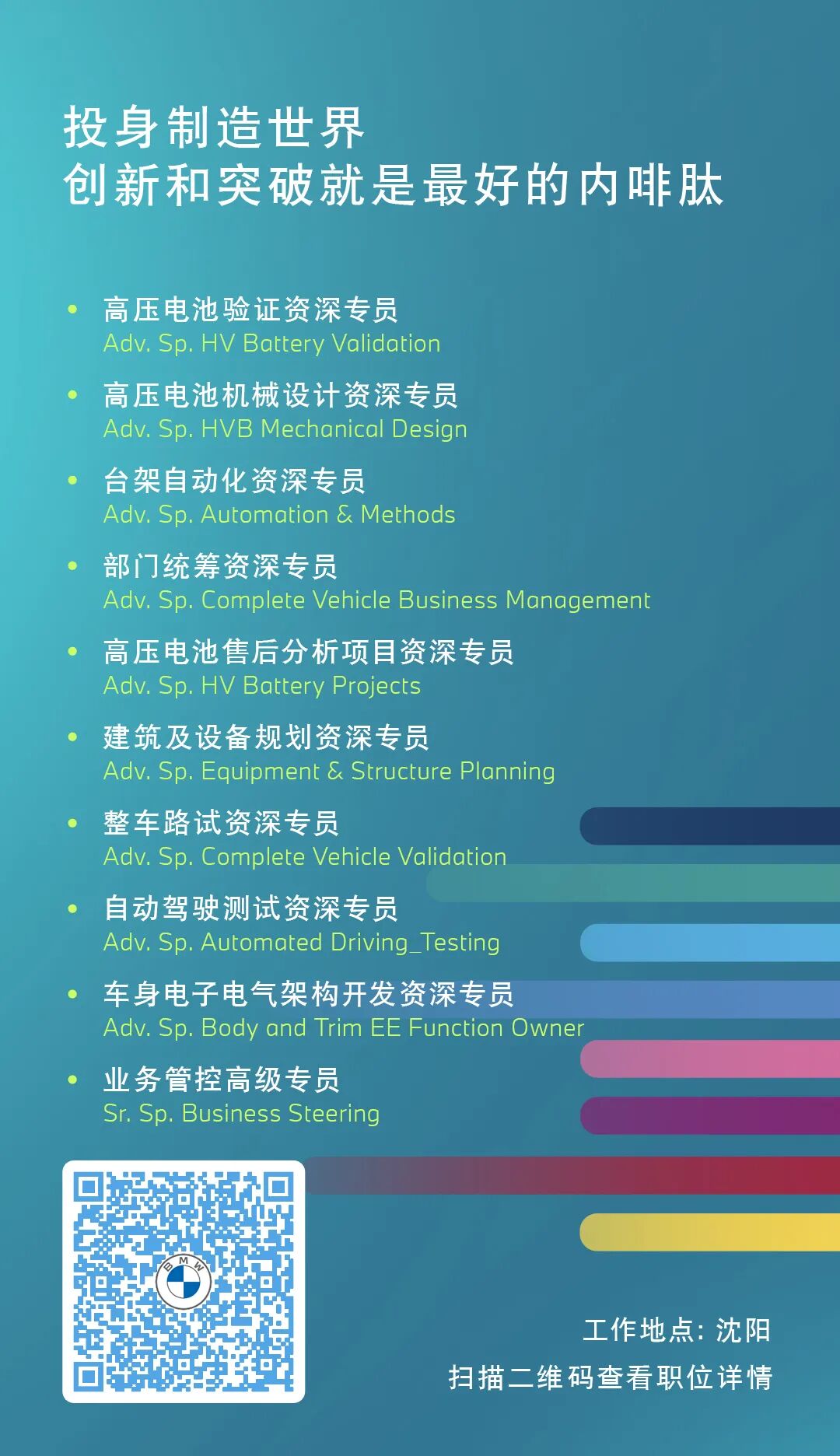 文章内容来源于公众号:华晨宝马招聘,点此可查看原文,内容版权归相关企业所有,本网站仅供交流学习。若涉及版权问题或存在侵权情况,请及时与我们联系,我们将第一时间进行删除处理。