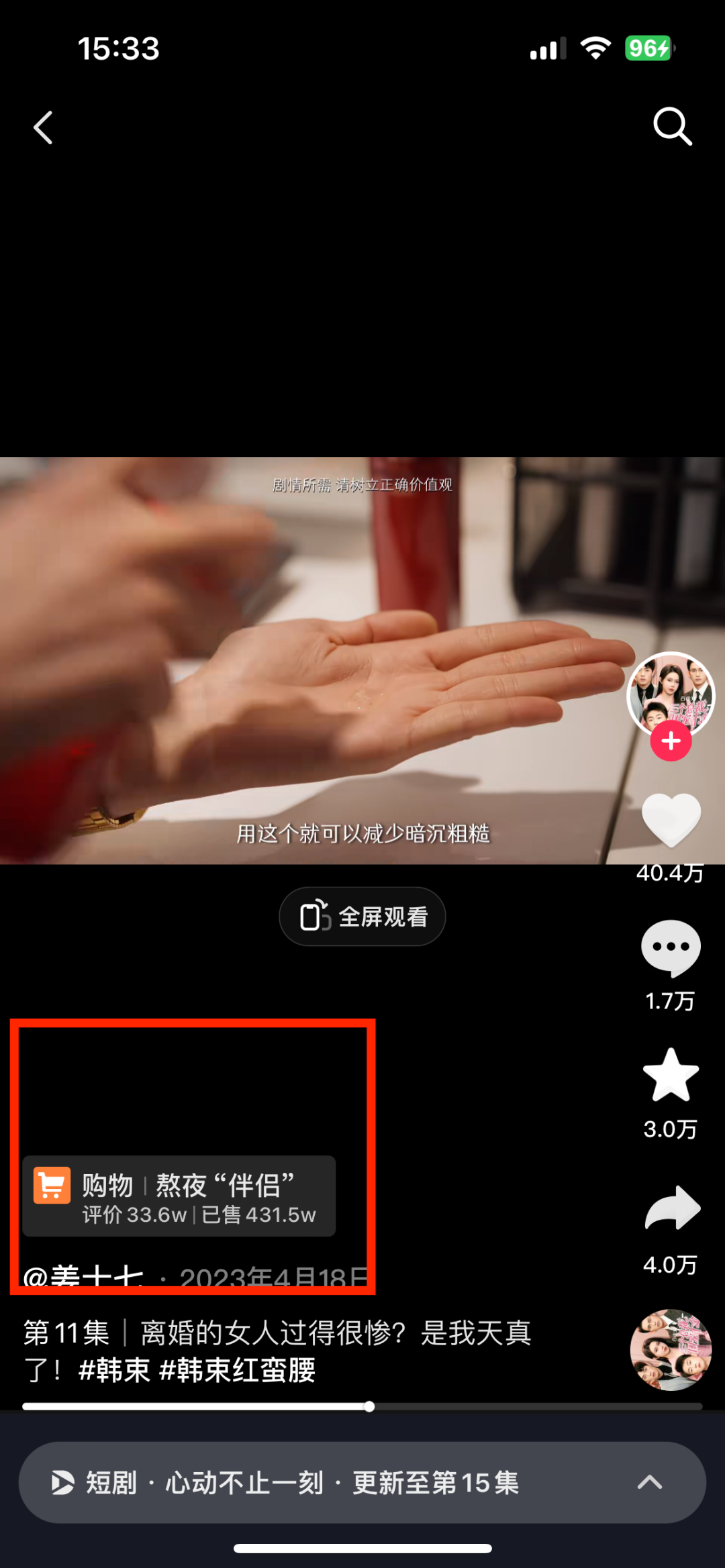 与此同时,作为短视频时代诞生的产物,短剧呈现了一些传统剧集所不具备的营销能力:如「品牌定制」「评论互动」「商品页跳转」等。