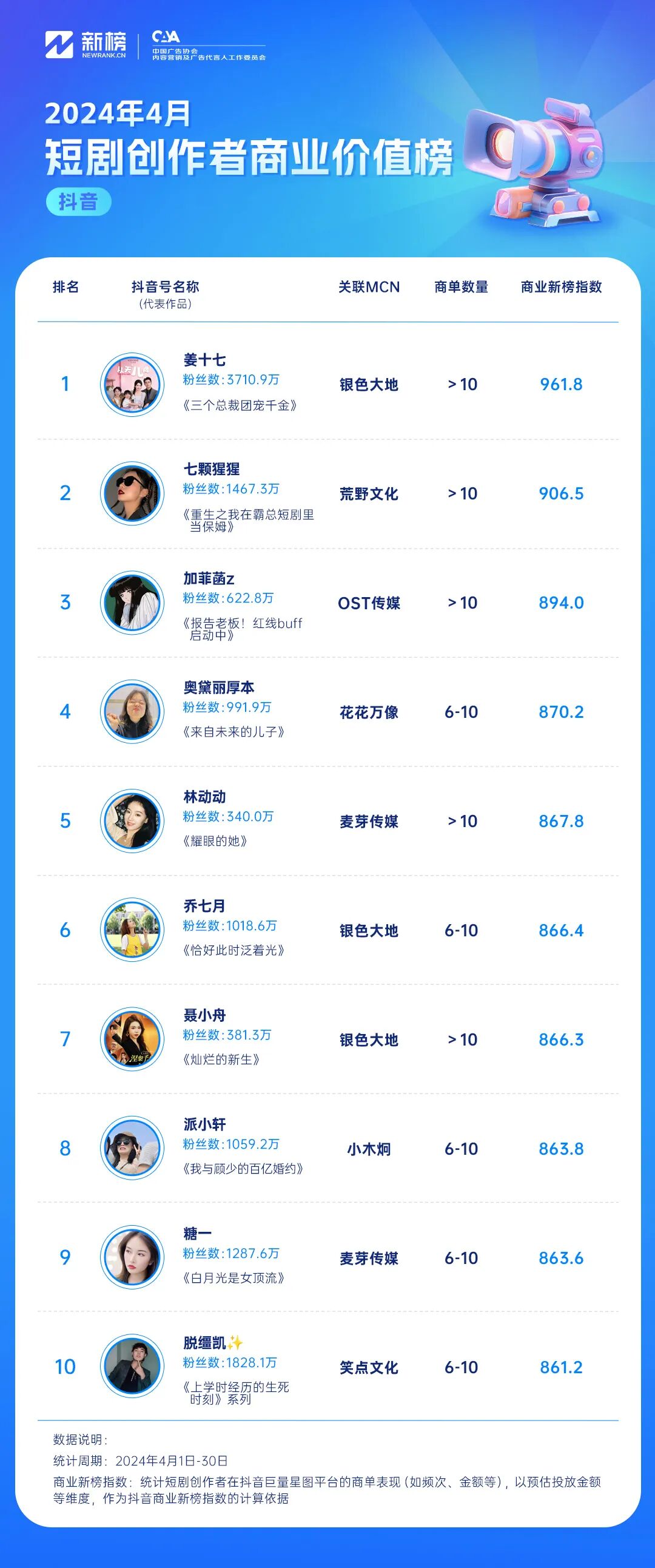 1. 抖音短剧创作者影响力榜
