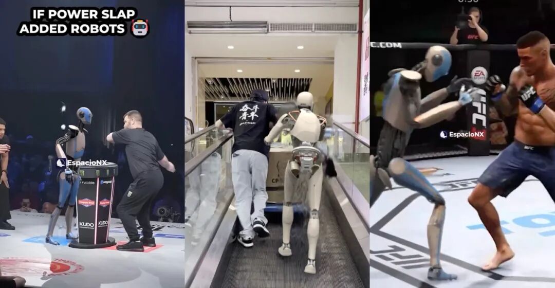 在科技大厂致力于让AI更像人的时候,短视频创作者们找到了一种新的引流方式,开始让真人“伪装”AI,塑造两者和谐生活的场景。创作者们选择用CG角色替代视频中的真实人物,伪装成AI参与了整个过程,“指使”他们炒菜、做家务、打比赛等等。这些视频都是如何制作的?AI“入侵”人类生活,成了短视频新的流量密码?“头号AI玩家”进行了一番实测观察。今年年初,视频号博主“脑洞菌的AI生活”发视频称“有了AI机器人喂猪,你还能干什么”,评论区里网友直呼“都有AI了,为什么还要我们”,“好好干,干好了就不用我干了”,在线监工督促AI干活。视频号博主“脑洞菌的AI生活”从2023年底开始更新,至今已发布了约110条AI机器人视频,内容大都围绕AI体验人类生活,其中不少视频获得了超10万次点赞和转发。在她发布的视频中,AI机器人收稻子、喂猪、和对象吵架拌嘴,从扣篮到广播体操,再到服务员上菜,和人类恋爱逛街,可以说深度参与了人类生活。匆匆扫一眼的观众都以为机器人可以像人一样熟练地干活了,有不少网友感慨:“现在老板都用上机器人了,与时俱进。”但事实上,这些都是用AI制作的特效视频。一个真人视频,用AI角色一键替换后,配合简单的旁白对话或是洗脑的短视频音乐,就拼凑出一个简单的AI体验人类生活的片段。而视频能够火出圈,最为关键的是呈现上的真实感。无论是让AI喂猪,还是贴春联、上街摆摊,哪怕视频中有其他真人出现,也要让角色替换显得自然不突兀。除了“脑洞菌的AI生活”,海外博主“EspacioNX”用AI工具将真人替换成机器人,制作了一场AI与人类的互殴比赛,堪称奥斯卡级别的整活能力。在某个世界级扇耳光大赛上,人类参赛选手以横扫千军的气势,一掌呼向了机器人,场面酷炫得让人不禁疑惑“现在的机器人,质量好到能上擂台打比赛了?”,该比赛视频在油管(YouTube)上播放量超1.5亿。这些生动的AI有固定的人设,譬如打工人、体育生、拳击运动员等,再加上网友享受在线监工的乐趣,迅速席卷了各个平台。AI机器人刷墙,图片来源:小红书“机器人ROBOT”用AI做短视频号,早已不是新鲜事儿。前有AI猫猫剧情号, 到现在用CG角色、动漫人物替换真人制作短视频。类似的AI特效视频,通常只需要一段生活素材,加上一款工具就能实现。AI视频创作工具WonderStudio就上线了可以进行角色替换的功能。用户上传视频后,选定需要改变的人物形象,即可一键替换成机器人CG角色。