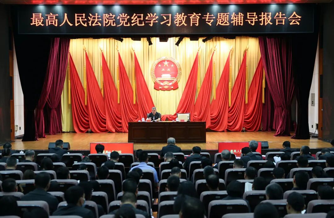 根据工作安排,党纪学习教育期间,最高法党组开展为期2天的读书班活动。在4月29日读书班的基础上,今天上午,中央纪委国家监委驻最高法纪检监察组组长、最高法党组成员张荣顺向全体班子成员和全院党员做了《条例》学习辅导报告,详细介绍了《条例》及其鲜明特色,结合最高法工作实际以及近年来违纪违法典型案例,对《条例》总则和分则的主要内容进行了深入解读。下午,举行党组理论学习中心组(扩大)集体学习研讨。