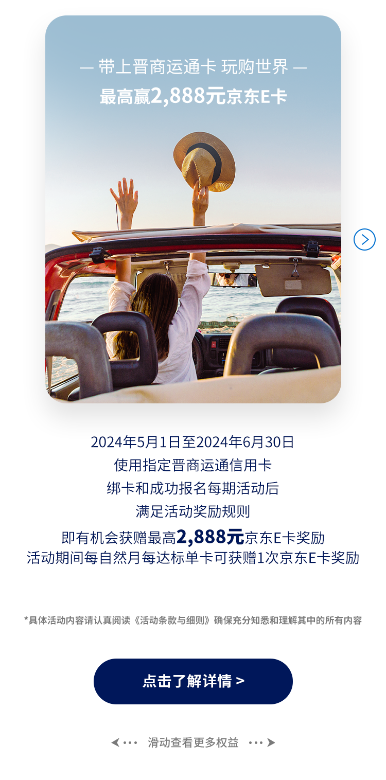 文章内容来源于公众号:晋商银行信用卡,点此可查看原文,内容版权归相关企业所有,本网站仅供交流学习。若涉及版权问题或存在侵权情况,请及时与我们联系,我们将第一时间进行删除处理。