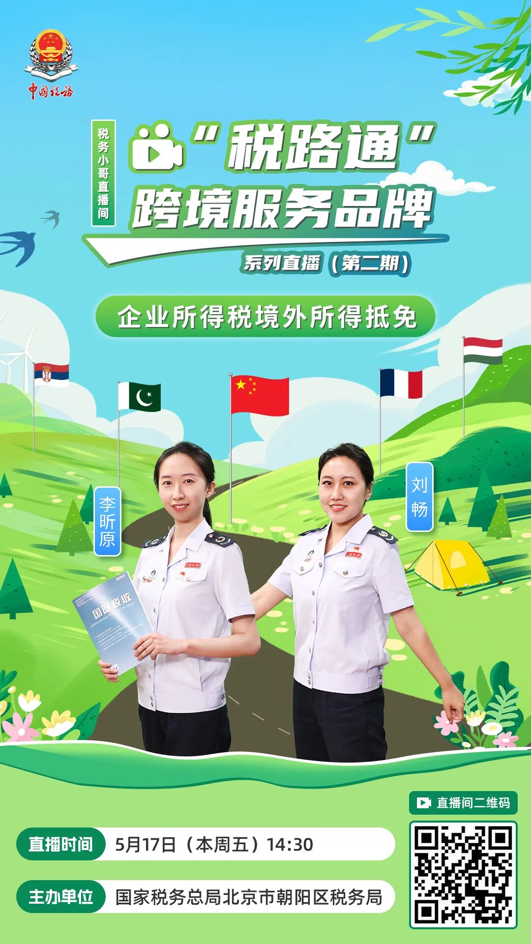 本次税务小哥直播间将由所得税科和国际税收管理科联合为大家带来“税路通”跨境服务品牌系列直播第二期——企业所得税境外所得税收抵免。正值企业所得税汇算清缴期间,希望能帮助“走出去”纳税人更清晰地了解境外所得税收抵免的政策规定、办理流程和注意事项,充分享受税收抵免政策,助力企业行稳致远。