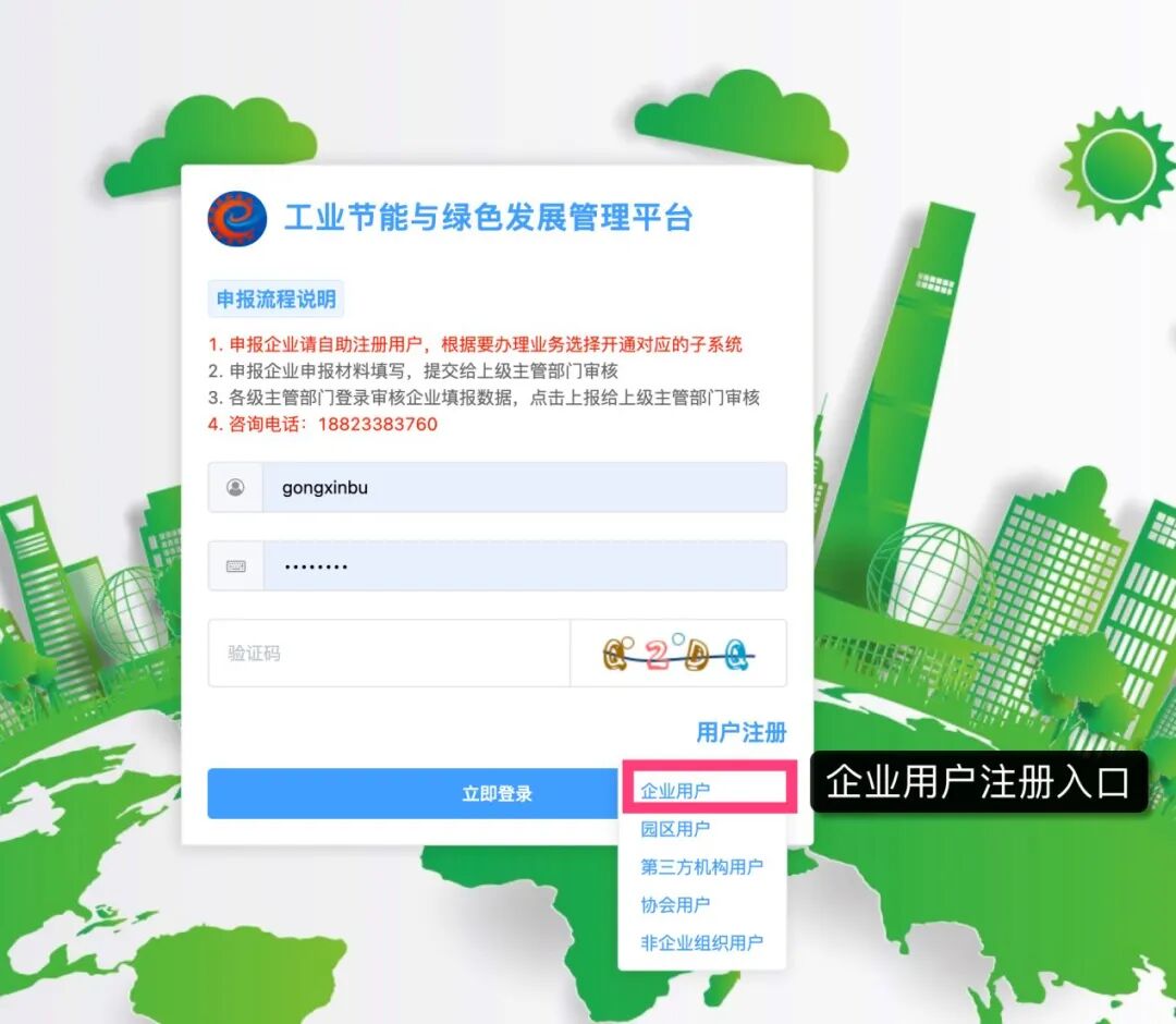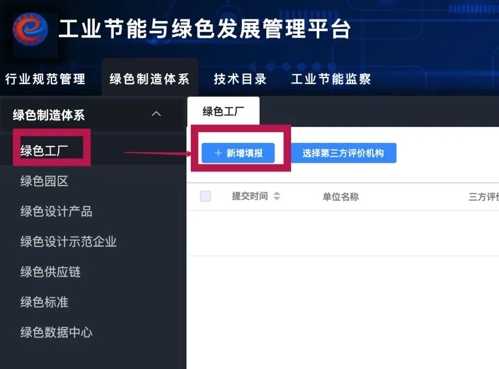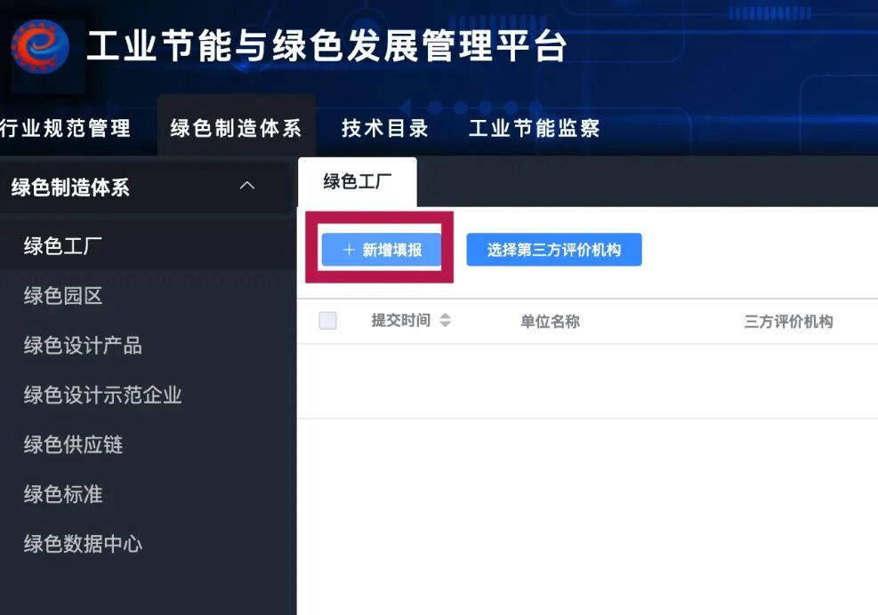 以绿色工厂为例,请申报绿色园区,绿色供应链,绿色数据中的企业,进入对应的模块按同样流程进行申报工作。