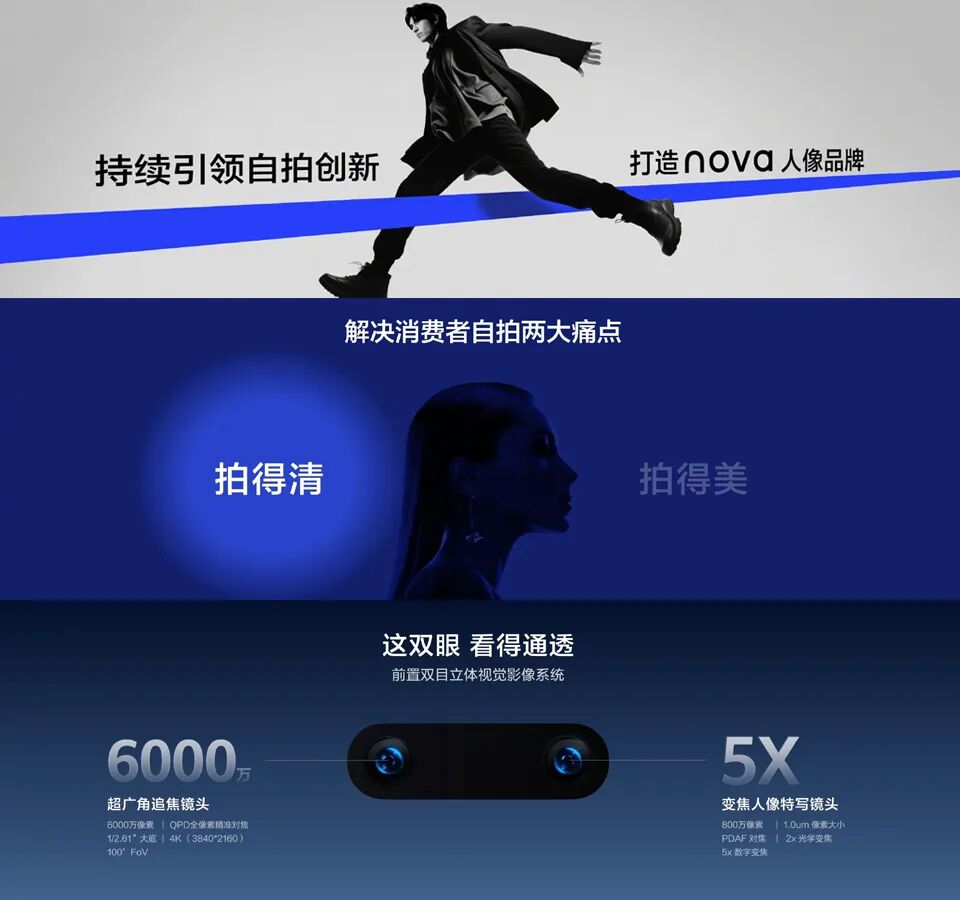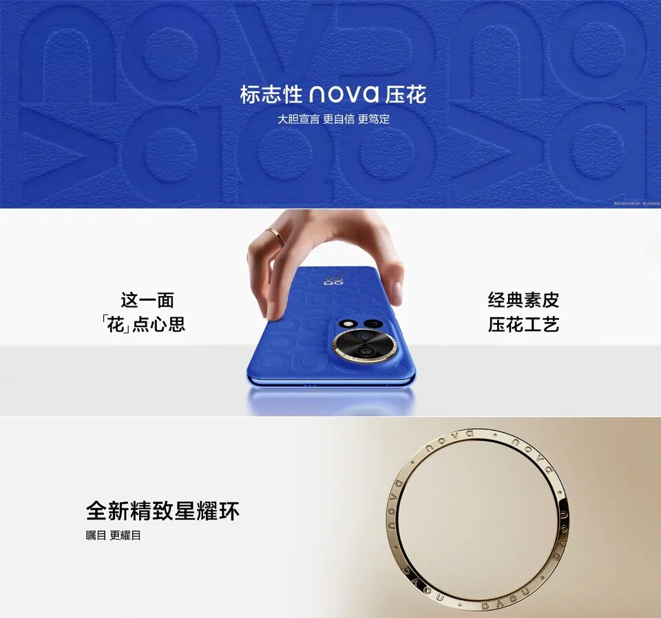2023年12月26日,华为举办的问界M9及华为冬季全场景新品发布会,正式推出了备受期待的新品——华为nova 12系列。这款手机定位为“时尚先锋全能人像手机”,在外观、影像、通信、系统等皆迎来大幅升级,或将成为中端市场的新热门选择。nova 12系列此次代际色为12号色,它采用了引人注目的“瞩目之蓝”,这种鲜明的色彩与周围环境形成了鲜明的对比,使得华为nova 12系列在众多手机中脱颖而出。搭配精致星耀环,璀璨夺目;业界首创一体化素皮压花工艺,浑然一体,宛若天成;同时,华为nova 12 Ultra还采用了一体化背板设计,素皮包裹至镜头模组的金属边框之上,带来更为浑然天成的视觉感受。华为nova 12为臻彩直屏,其6.7英寸大屏加极窄边框,带来沉浸感极佳的视觉效果;而华为nova 12 Pro和华为nova 12 Ultra则使用了全新四边微曲直屏,也就是6.76英寸流体动态臻彩屏,并加入了自研AI HDR技术、全屏AOD显示功能,支持1~120Hz LTPO动态自适应显示、高频PWM护眼调光等领先技术,实现了真实色彩、动态范围、流畅度、清晰度等全维度升级。同时,华为nova 12 Ultra还搭载了第二代昆仑玻璃,使其抗刮耐摔能力大幅提升,能够有效防止屏幕在受到外力冲击时而变形或破裂。华为nova 12系列为在影像方面带来了全面的升维体验。其中,华为nova 12前置6000万超广角人像镜头,支持4K视频拍摄;华为nova 12 Pro和华为nova 12 Ultra前置业内最强的6000万双目立体视觉影像系统,拥有QPD全像素精准对焦能力。其1/2.61英寸大底,能够呈现更为优秀的画面效果,再加上业界独一无二的0.7倍至5倍人像变焦拍摄,可以轻松拿捏各类场景下的人像构图需求,为用户带来绝佳的人像特写体验。在此基础上,华为nova 12系列带来了全新XD Portrait达芬奇人像引擎,其通过对大量优质人像图片分析,从“形、质、光、色”四个维度对人像特征深度调优,例如面部皮肤、面部骨骼、面部光影等。最终在保留自然美感,尽显个人独有辨识度的基础上,做到提升肤色均匀度,带来最自然、舒适的人像美颜效果。华为nova 12系列的后置镜头模组同样有着不俗的影像实力。华为nova 12配备5000万超感知摄像头,拥有RYYB超感光滤色阵列,实现了超大进光量;华为nova 12 Pro和华为nova 12 Ultra则内置5000万物理可变光圈镜头,拥有支持F1.4至F4.0智能调节的第二代物理可变光圈,并通过QPD全像素对焦技术带来了精准快速的对焦能力。华为nova 12系列搭载了鸿蒙智慧通信,搭载低频广覆盖天线,信号收发能力更强,且支持双卡双通。两路信号时刻在线,在地铁、高人流商场、电梯、户外景区、演唱会等弱信号场景下,均能保持超自如的通话与疾速上网体验。同时,华为nova12系列还搭载了华为独家的双向北斗卫星消息功能,在无地面网络信号的情况下,依然可以与外界保持双向(发送/接收)信息沟通,此次还进一步升级,支持与其他智能终端双向信息沟通,信息接受方可通过畅联App或短信H5网页进行回复,实现求救方和施救方的双向联络。在续航和充电方面,华为nova 12系列内置4600mAh大容量电池,配备100W华为超级快充Turbo,搭配上超强散热架构,能够缓解用户续航焦虑并为用户舒适用机全面护航。在全新HarmonyOS 4的加持下,华为nova 12系列的智慧体验也更进一步。例如全新智能魔法抠图,支持图层组合,能够将人物或物体单独抠出,从而结合第三方应用进行二次创作;鸿蒙智慧图库,支持图库语义搜索,通过调用系统级AI能力与搜索引擎能力,实现基于自然语言的智慧搜索;还有更全面的鸿蒙隐私安全,让用户畅享纯净用机体验。特别是华为nova 12Ultra,更是带来了隔空手势、智感支付等一系列智慧交互功能,大大提升了日常使用过程中的便捷高效性。综合来看,无论是时尚潮流外观,还是全新升级的前后置影像系统,又或是表现出色的屏幕、通信能力,以及HarmonyOS 4带来的高效便捷体验,华为nova 12系列均凸显了其在同档位机型中领先的综合产品实力。![]()