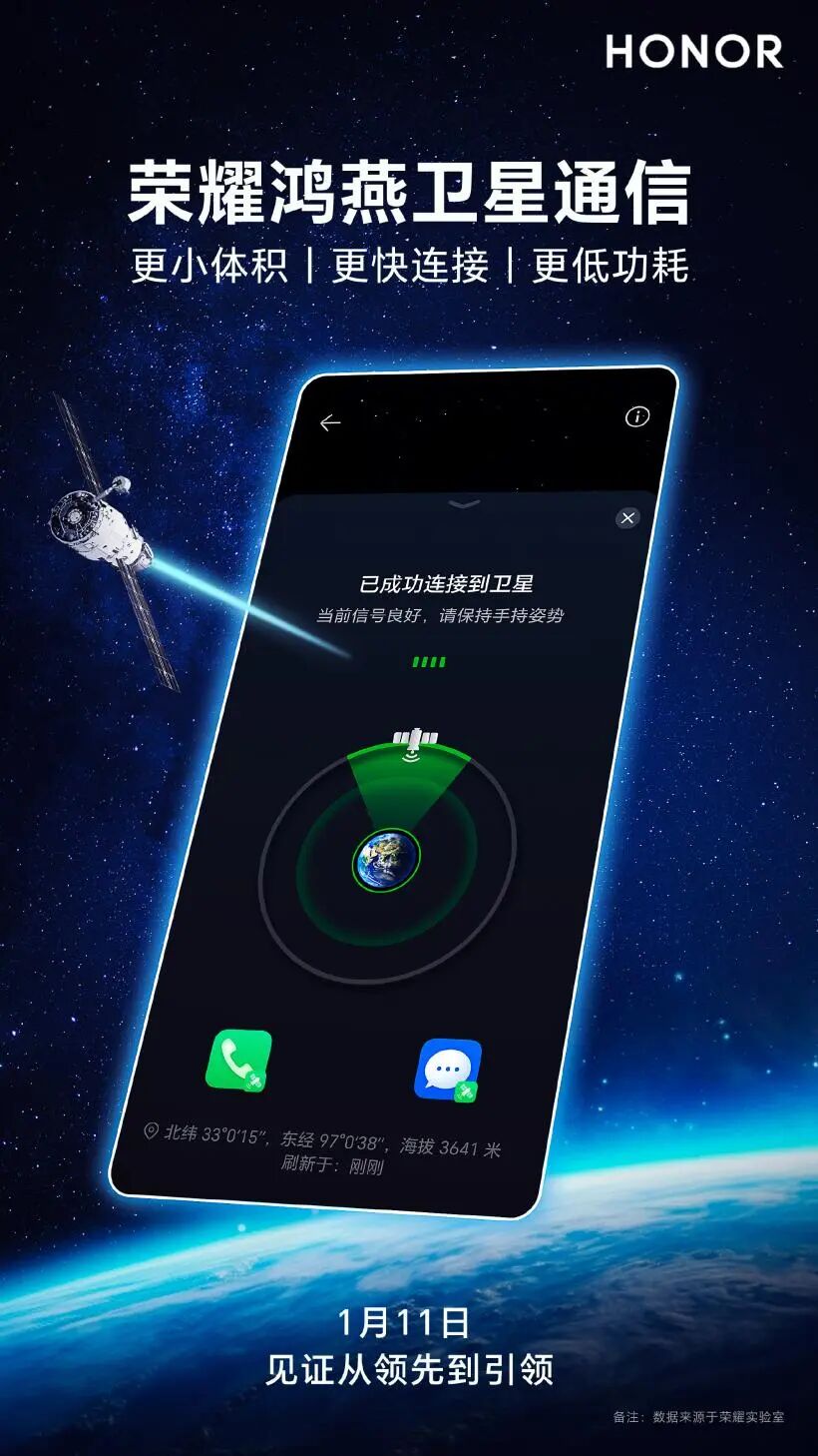 12月27日,荣耀手机官方微博官宣荣耀Magic6系列搭载荣耀鸿燕卫星通信。
