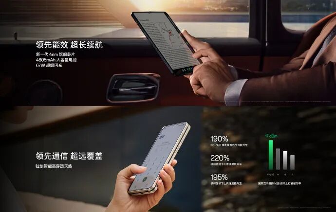 #OPPO Find N3#拥有超长续航,支持 67W 超级闪充;独创智能高穿透天线,大幅提升信号强度;独创多扬声器系统,横竖都是立体声。