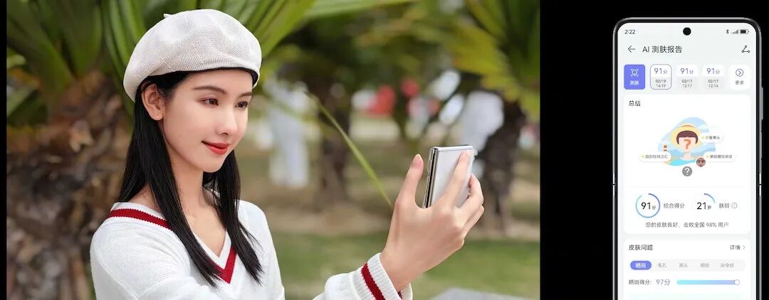 此外,她还常用华为 Pocket2 检测自己的皮肤晒斑情况,以供更好了解自己肤质情况,进行针对性护肤。陈都灵坦言,华为 Pocket2 是自己的贴心小管家,日常防晒、护肤都离不开它。