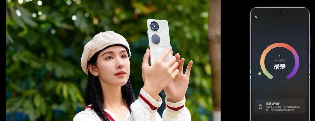 演员陈都灵也亮相此次发布会,她表示,紫外线无处不在,看不见摸不着,自己平时经常用华为 Pocket 2 检测自己的肤质状况。