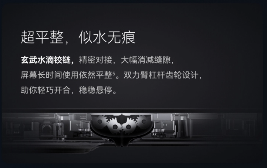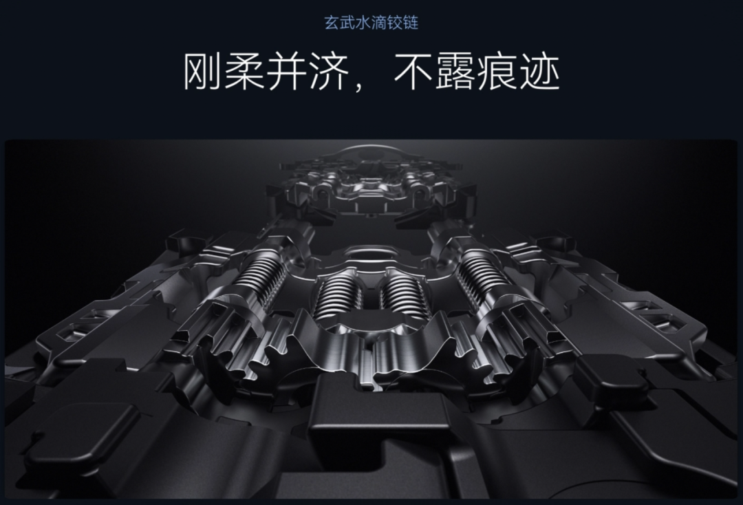 作为折叠屏,铰链是最受消费者关注的配置。为打造出平整无褶的屏幕,华为Pocket 2搭载了业界首创的玄武水滴铰链。