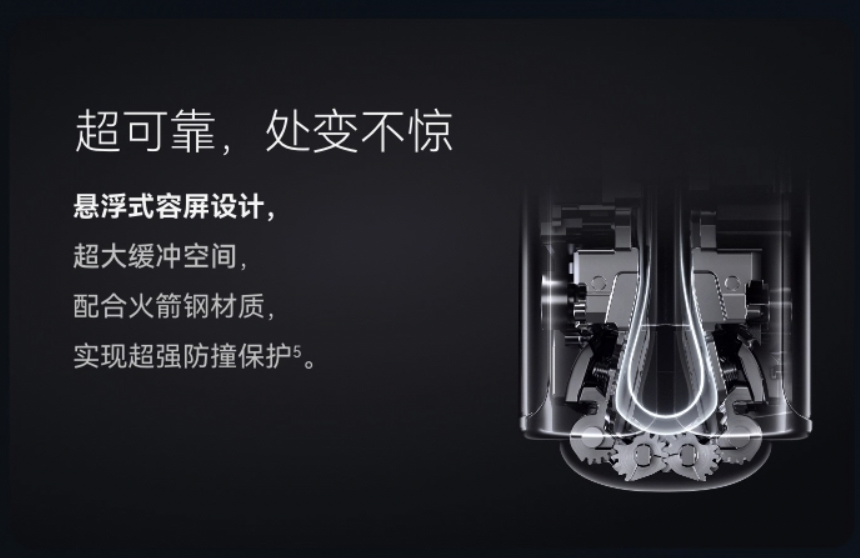 玄武水滴铰链的优势还不止于此,由于其采用业界独有的自研悬浮式容屏设计,并且引入了超强火箭钢材质,因此它的强度相较于上一代也有了显著提升,达到了20%,并且抗跌能力也因此提升了112%。
