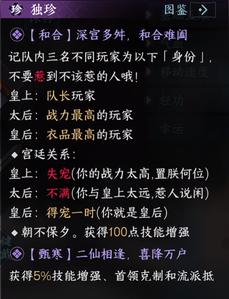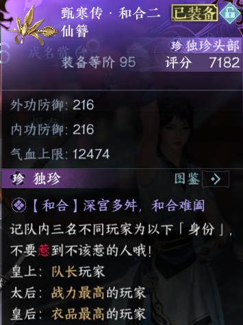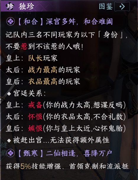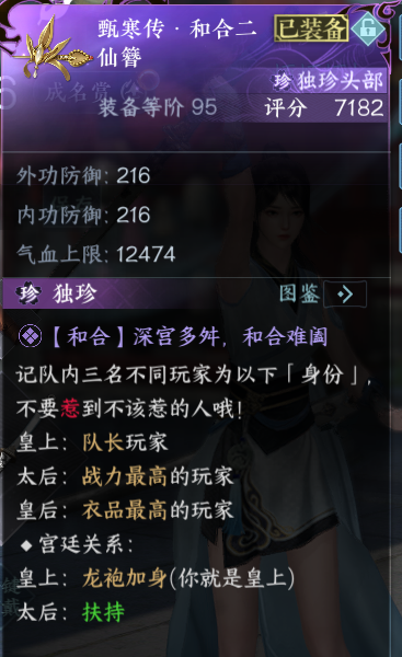 开头提醒:以下内容为《甄嬛传》联动中,一件包含趣味扮演小玩法的联动独珍装备,并非大家强制参与。如果您不感兴趣,完全可以无视规则直接使用,依然是一件非常强力的毕业级独珍。