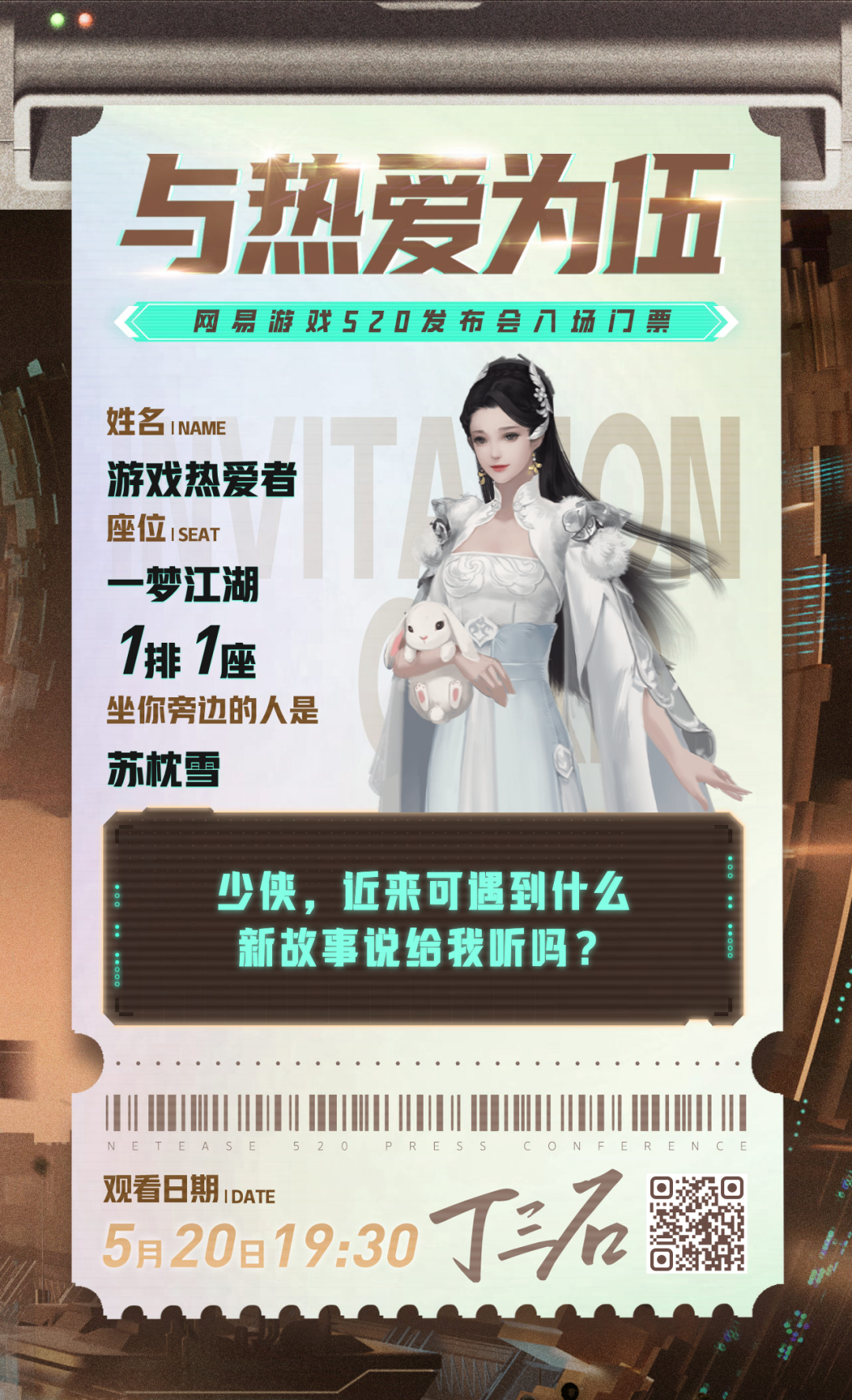 每次快到5.20时,世界上只有两种人:和侠缘过520的少侠、和万千江湖人一起过520网易游戏热爱者日的少侠!不管如何过,我们都强烈建议少侠前来围观网易游戏520盛会上的一梦江湖的精彩最新爆料!