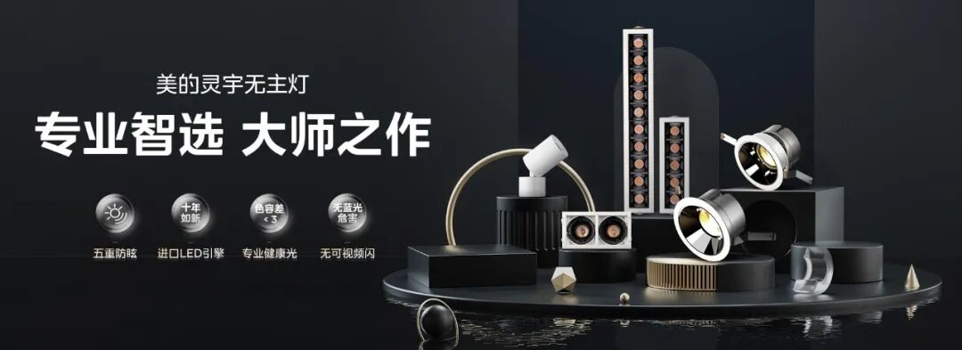 其中,灵宇无主灯系列产品涵盖嵌入式筒射灯、灯带、磁吸灯、格栅射灯、吸顶射灯、恒压电源,可为高需求用户提供大师级的专业灯光。美的全光谱吸顶灯-iCare自然光系列更贴近自然光,优于教室的照明标准,可呵护用眼睛健康,契合人体作息节奏。可接入美的智能照明系统Homlux,更可轻松控制全屋照明设备,实现各种照明场景的迅速切换,让智慧生活触手可及。